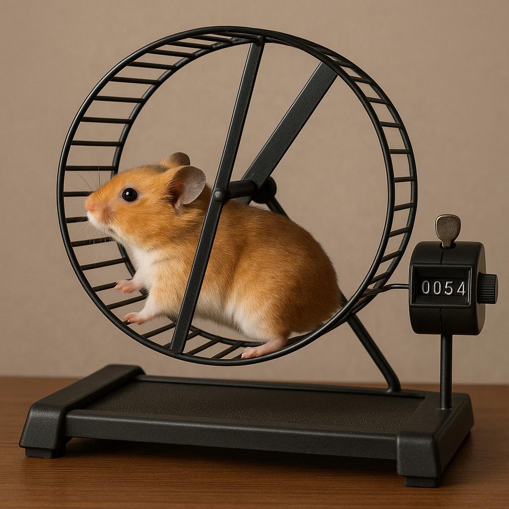 “Well,” he said, “we can hook up a counter to the treadmill. If we measure the length of the wheel, we can calculate how many miles he runs each night.”