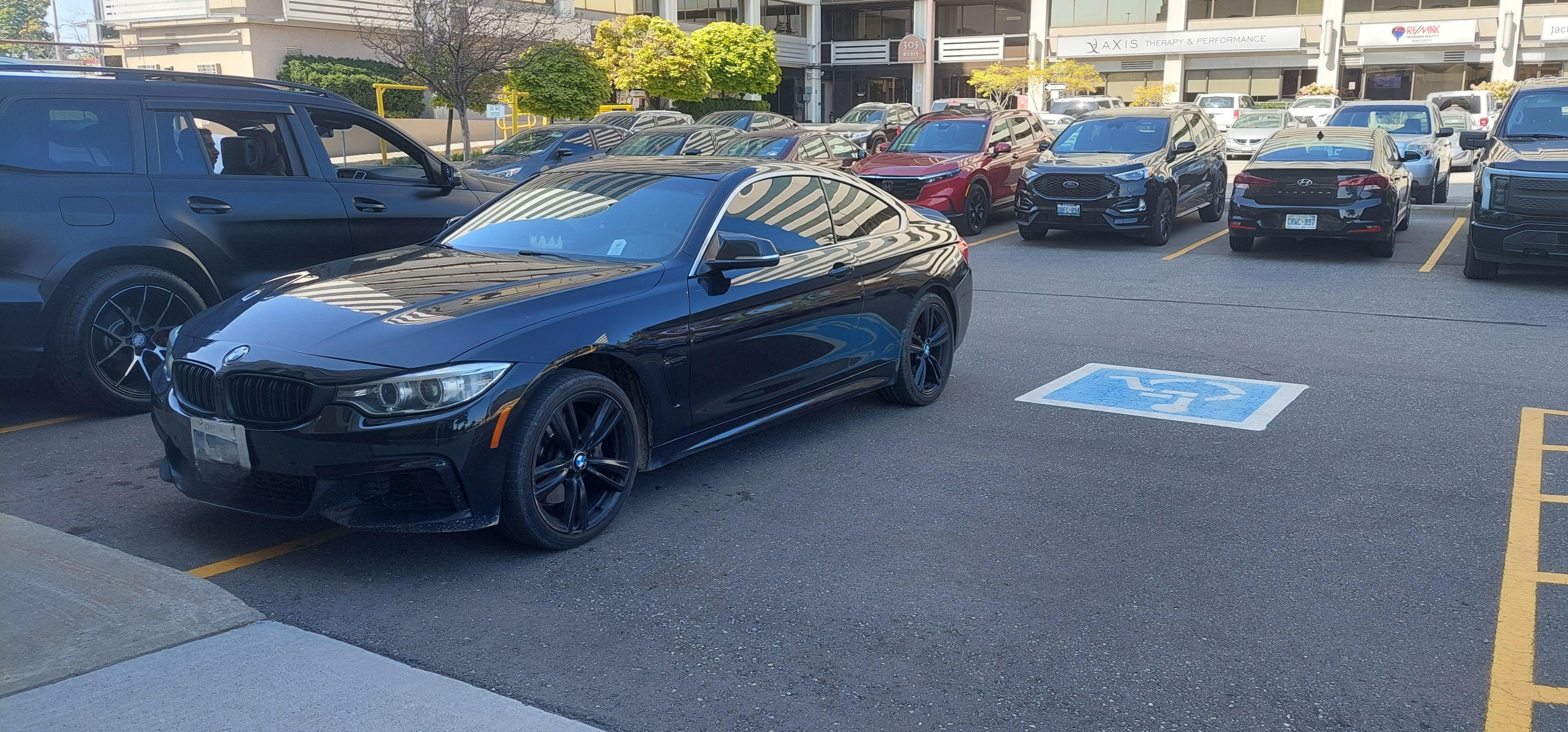 I was at a store yesterday getting gas when this guy in a BMW pulled in and took up two handicap parking spots right in front of the store. Anyone who knows me understands how much this kind of behavior irritates me. I parked my car, got out, and checked to see if there were any handicap plates or hang tags on his vehicle. My plan was to wait until he came out of the store and confront him.