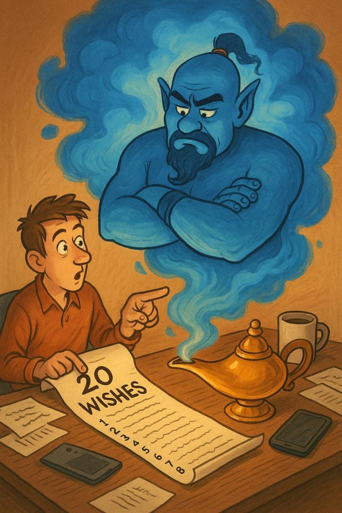 That’s easy — my first wish would be for 20 more wishes.