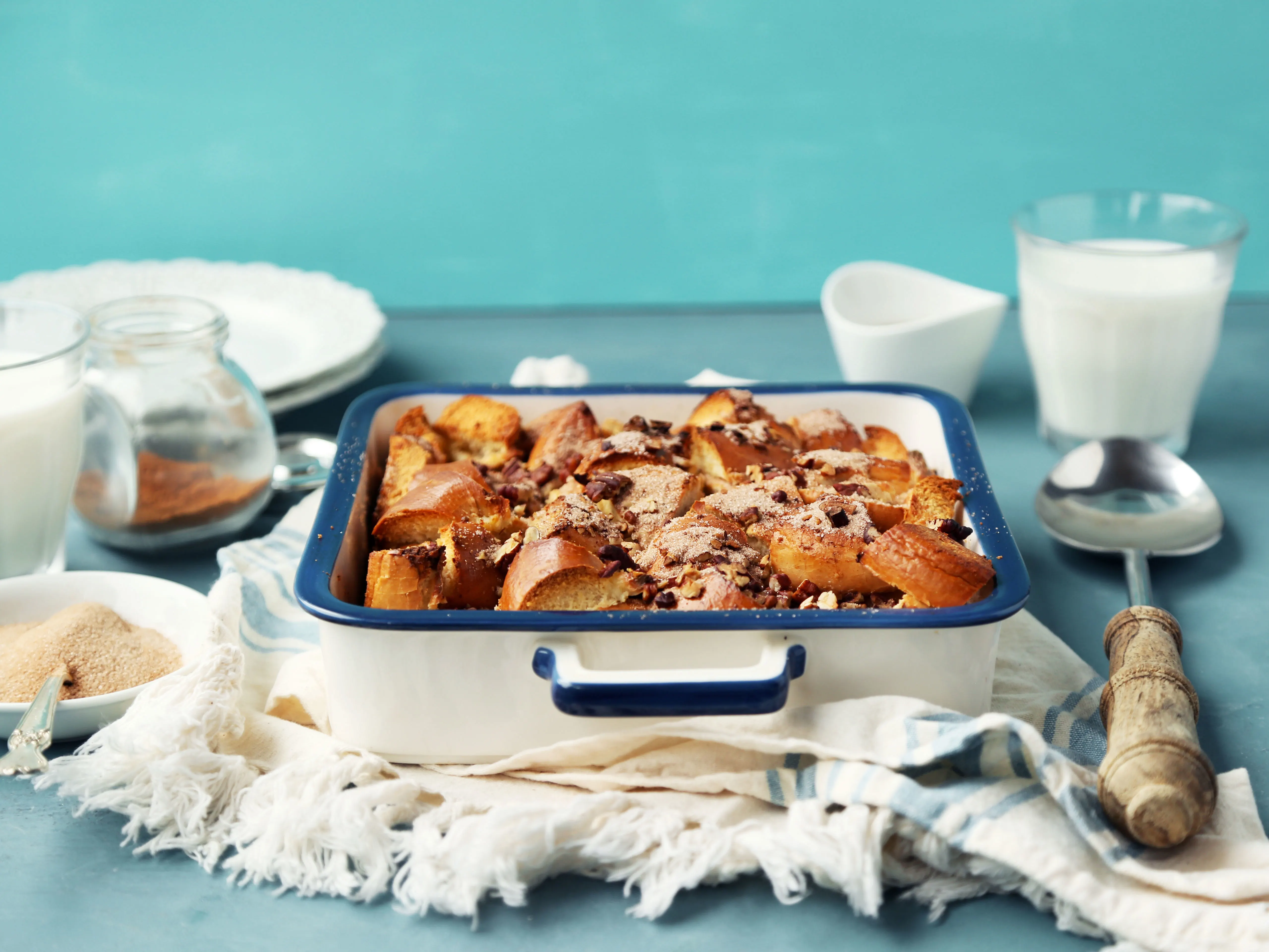 - 6 cinnamon-raisin bagels, cut into bite-size cubes